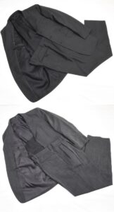 ↑こんな感じの肩パッドがしっかり入りパンツもツータックでまた上がめちゃ深くて、渡り幅も38cmくらいあるスーツとか。