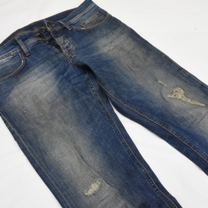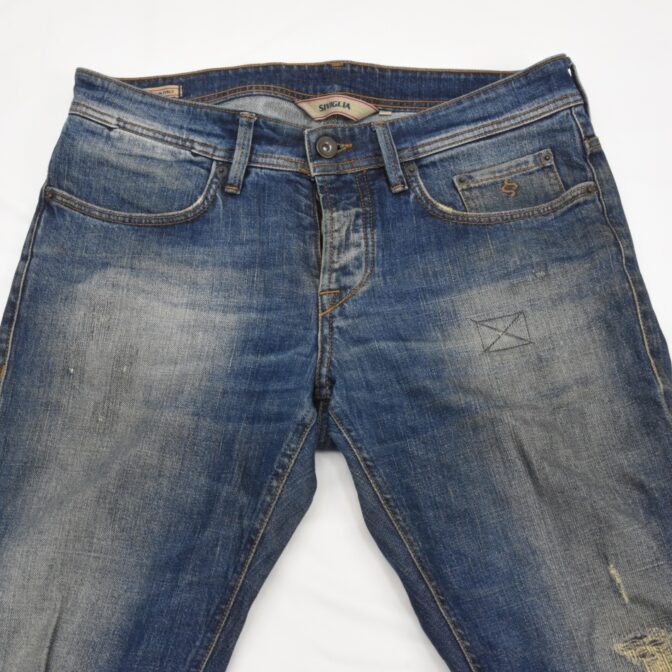 SIVIGLIA(シビリア)のウオッシュダメージ加工デザインのストレッチジーンズ。