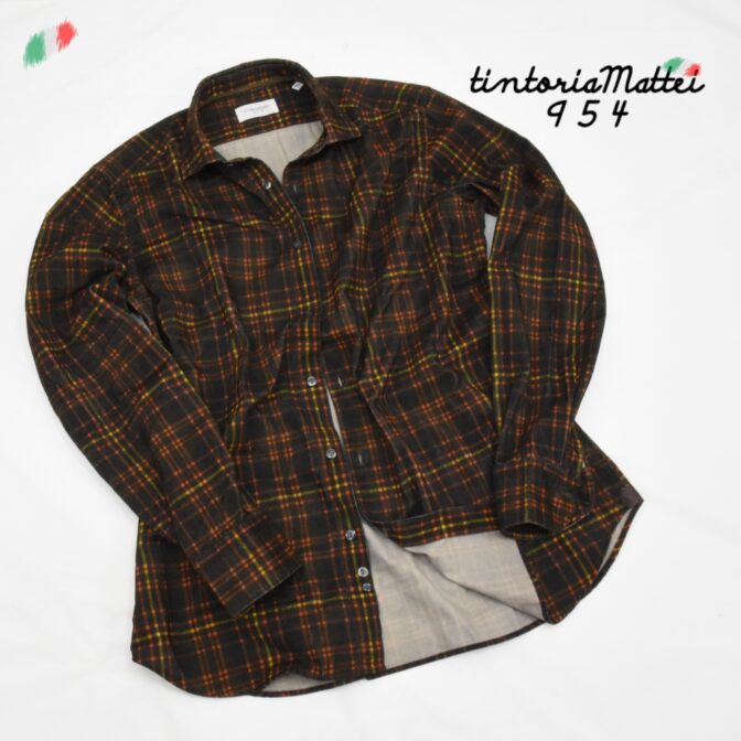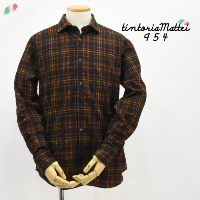 イタリアのシャツ専業ブランドTintoria Matei954(ティントリアマッテイ954)のマイクロコーデュロイチェックシャツ。