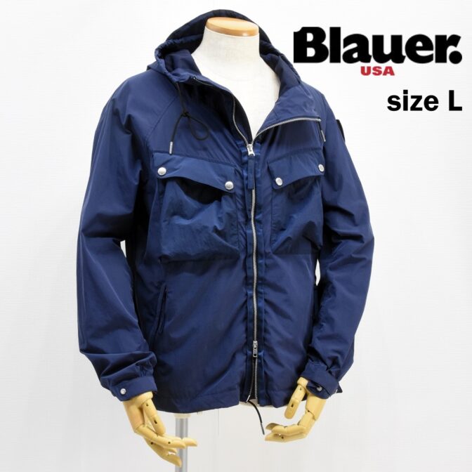 新品◇BLAUER USA ナイロンフーディブルゾン◇サイズL◇ネイビー◇ブラウアータクティカル◇春秋羽織り◇イタリアデザイン◇