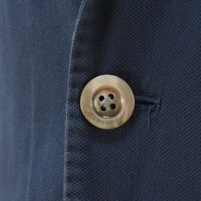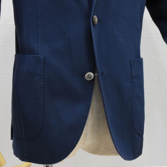 3つボタン段返りジャケットで、フロントとバックにはAMFステッチがあしらわれ、ボリオリらしい蝶貝を使ったボタンも目をひきます。