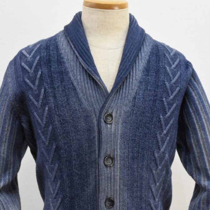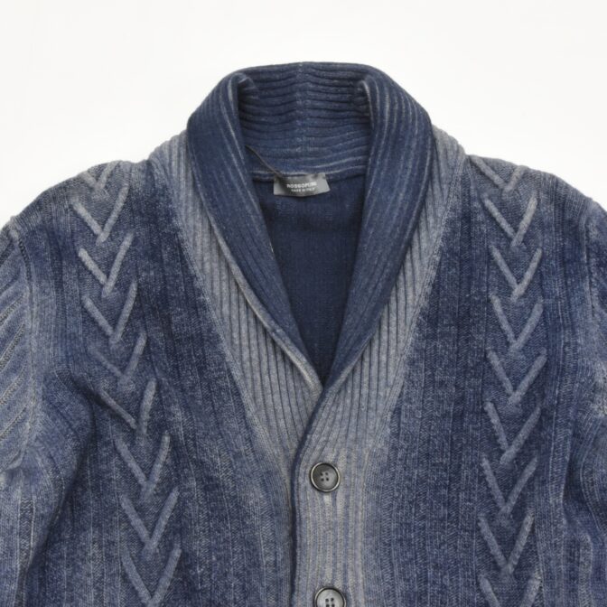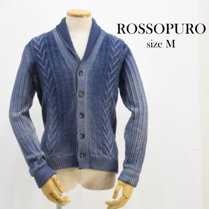 ◇ROSSOPURO◇ウールカシミアショールカラーカーディガン◇サイズ50◇ブルー系◇イタリア製◇