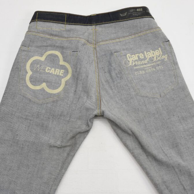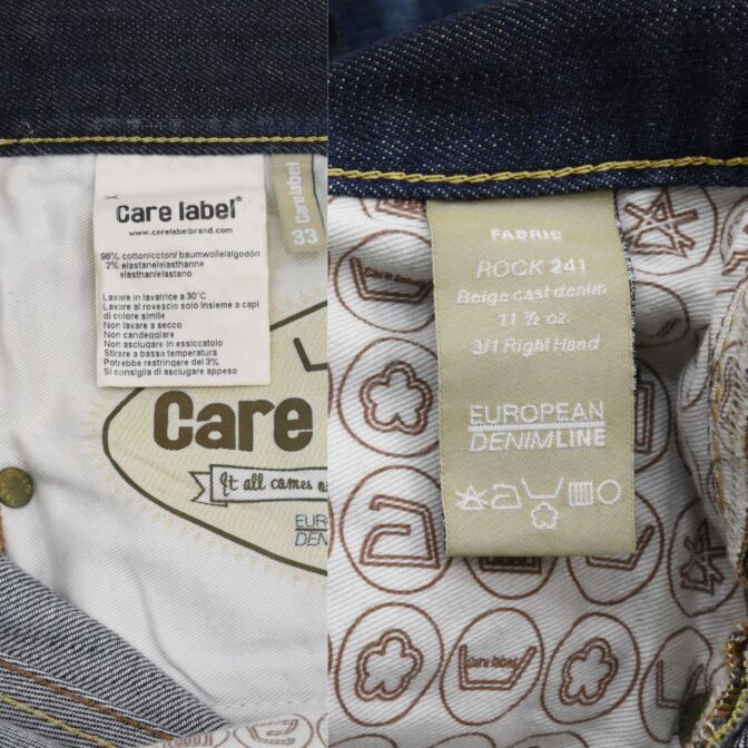 ケアレーベルのスリムシルエットのストレッチジーンズです。