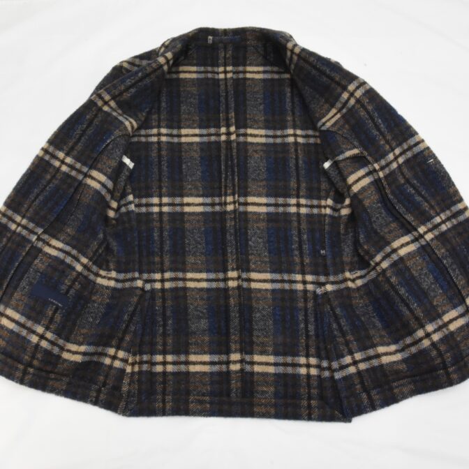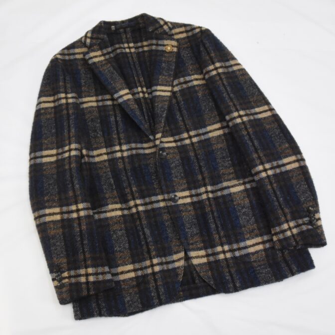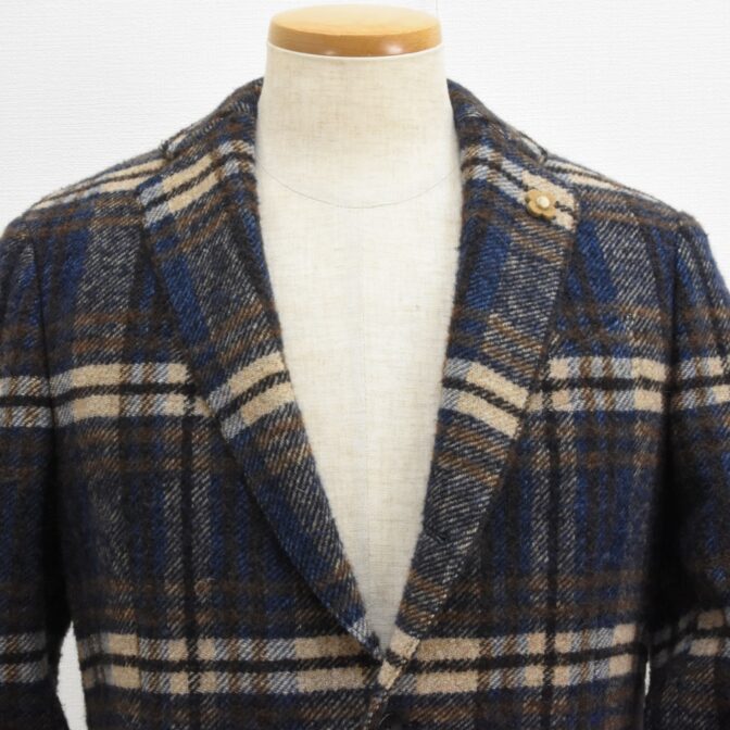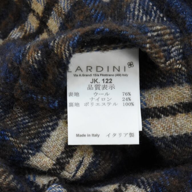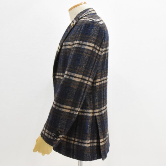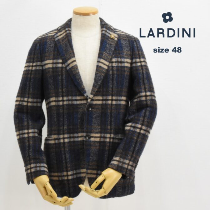 LARDINI◇タータンチェックウールジャケット◇サイズ48◇ネイビー地◇背裏なし◇ラルディーニ