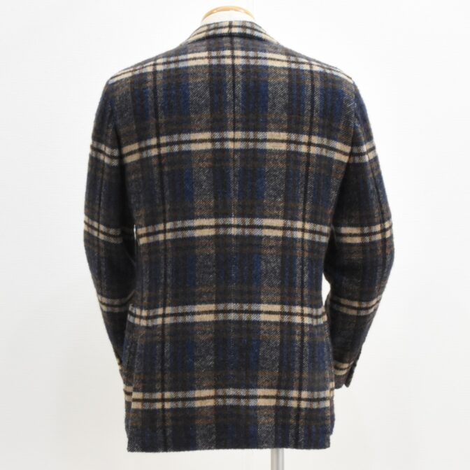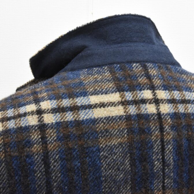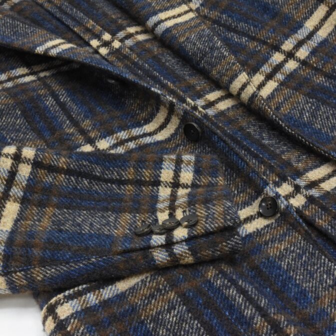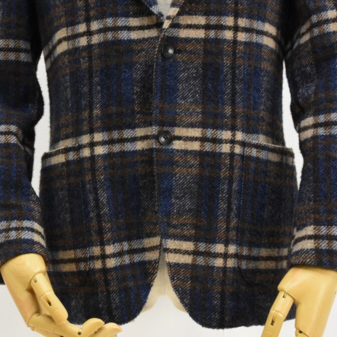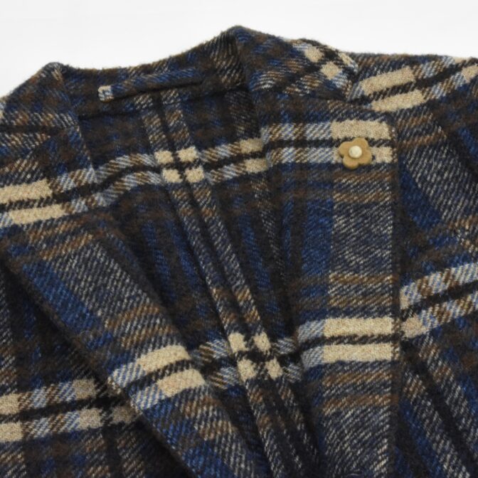 ネイビーベースのウールジャケット地にチェック柄がのコーディネートの幅を広げてくれます。