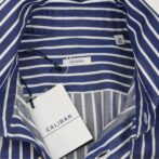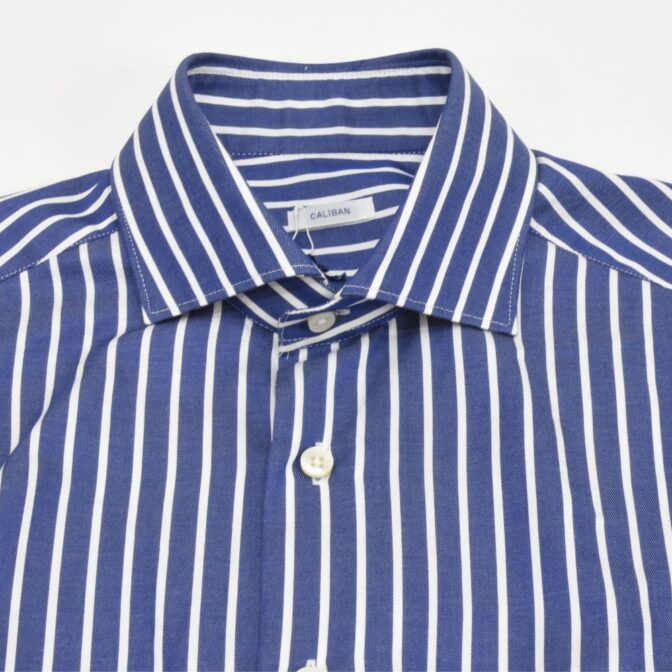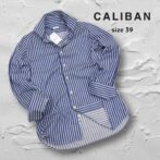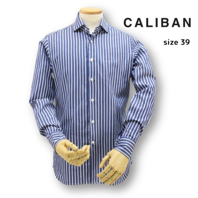 OUTLET◇CALIBAN◇ペンシルストライプシャツ◇サイズ39◇ネイビー◇ホリゾンタルカラー◇カリバン