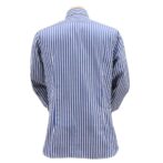 なめらかで艶のあるコットン100%の生地で、ペンシルストライプ柄がプリントされたシャツです。