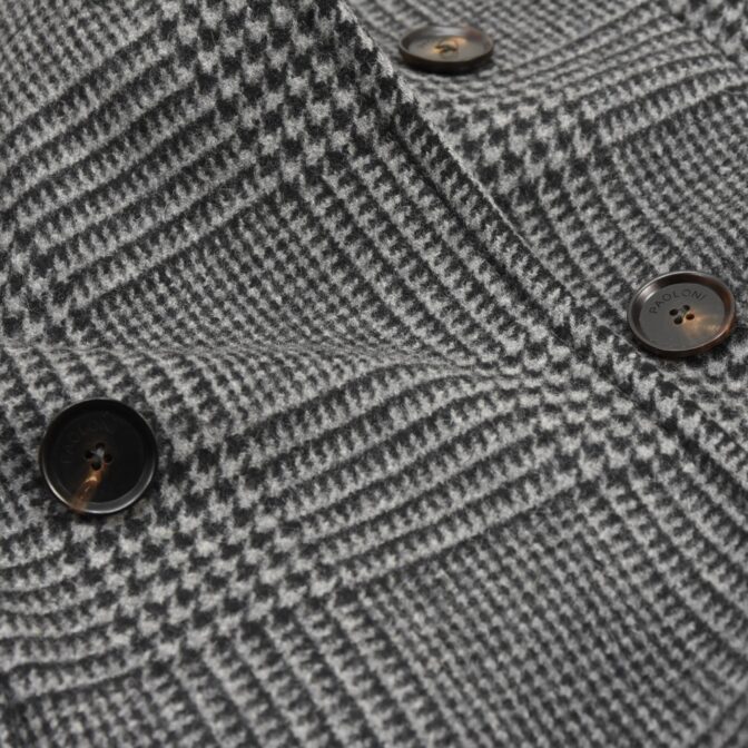 グレンチェックのウールのコート地を使用したしっかりした作りのコートです。