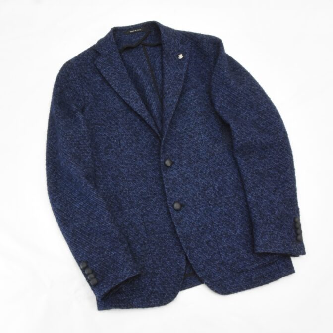 タリアトーレの織り柄が目を引くウールニットジャケット。